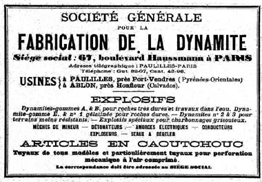En tout état de cause et bien que restant à préciser, les liens unissant Paulilles à l’industrie du caoutchouc relèvent de l’expansion du secteur de l’outillage pneumatique. En 1923, une réclame souligne en effet, au sein de l’unité de Paulilles, la fabrication de tuyaux de tous modèles et en particulier celle de tuyaux pour perforation mécanique à air comprimé. Sous réserve de vérification, cette fabrication serait peut-être à mettre en relation avec la création de la Société française d’outillage à air comprimé[3], fondée en 1908 à l’initiative de Frédéric Combemale et alliés.