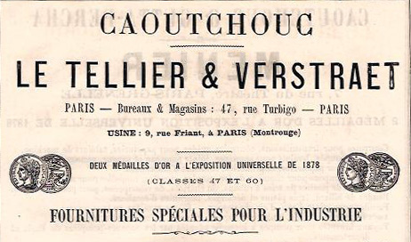 Extrait de la revue « Le Caoutchouc et le Gutta-Percha », publication A. D. Cillard, Paris, sd, 4 p.