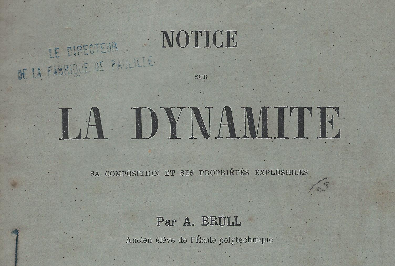 [4] BRULL Achille, Notice sur la dynamite, sa composition, ses propriétés explosibles, Extrait des Annales industrielles, Montpellier, typographie de Boehm et fils, 1871.