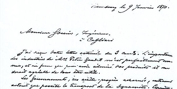 A l’origine du projet de fondation d’une fabrique de dynamite en Italie figure une correspondance établie entre Léon Gouin et Alfred Nobel. Le 3 janvier 1870, Léon Gouin[1], ingénieur des mines à Cagliari - Sardaigne - pour le compte des maîtres de forges Petin et Gaudet[2], demande en effet à Alfred Nobel une quantité de dynamite à l’essai. Cette demande se heurte alors à deux difficultés, d’une part le tarif prohibitif des assurances maritimes et d’autre part l’absence d’une telle usine sur le territoire italien.