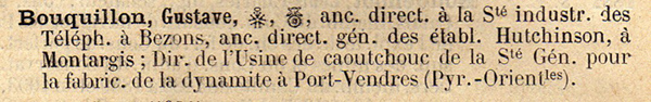 PRACA E., Gustave Bouquillon - Un pionnier de l'industrie du caoutchouc à Paulilles, Site Amis de Paulilles, rubrique Administration/Patronat.