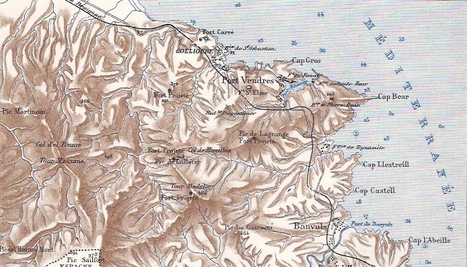 Un document évoque de fait les projets d’organisation retenus par le ministère de 1882 à 1888, projets alors mis en œuvre et dont une partie des fortifications est encore visible depuis l’anse de Paulilles. Ces ouvrages défensifs situés sur les crêtes des Pyrénées-Orientales ont pour objet de protéger la place de « Port-Vendres-Collioure », elle-même destinée à « empêcher l’ennemi d’utiliser le chemin de fer et la voie de mer pour amener en Roussillon ses troupes et son matériel ». Approuvé par le Comité des fortifications en 1882, ce nouveau programme de défense départementale a pour auteur le général Alexandre Segrétain (1826-1901)[1].
