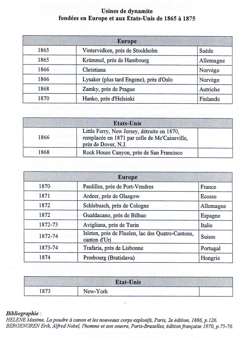 Dynamiteries fondées en Europe et aux Etats-Unis (1865-1875)