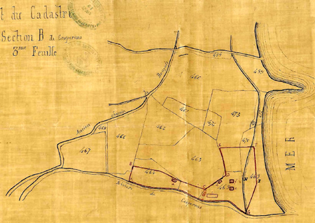 Extrait du cadastre section B de Cosprons, 3e feuille - Col. ADPO.