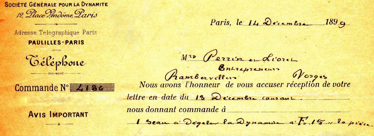 « Observation importante. Ne jamais employer de dynamite gelée. Dans cet état elle ne détone pas, ou ne détone que partiellement.