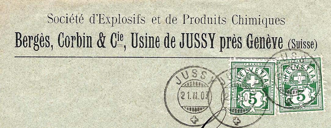 Société Bergès et Corbin - Usine de Jussy - Suisse - En-tête 1907