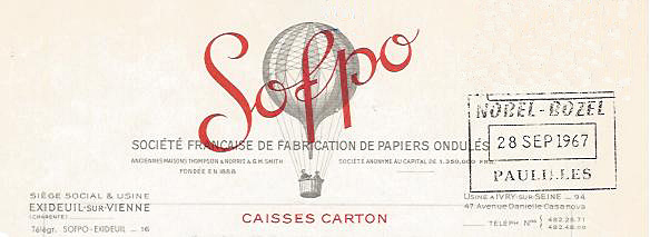 Dans les années 1960, l'usine de Paulilles commande des milliers de caisses à rabat à la Société française de Fabrication de Papier Ondulé (SOFPO) siègeant à Exideuil-sur-Vienne, en Charente. Issue des anciennes maisons Thomson et Norris et G.M. Smith, cette société anonyme au capital de 1 350 000 fr. est spécialisée dans la fabrication de « caisses en carton ». Son papier à en-tête est orné d’une montgolfière, sans aucun doute en référence aux papeteries historiques des frères Montgolfier. La société dispose pour sa part de deux usines situées, l'une à Exideuil en Charente, département traditionnellement voué à la papeterie, l'autre à Ivry-sur-Seine, en région parisienne. Fournissant également attaches et cartons à la dynamiterie de Paulilles, la société Sander, une autre entreprise établie à Bures-sur-Yvette, relève des mêmes secteurs d’activité.