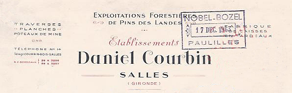 Une fois les cartouches de dynamite mise en cartons, les cartons sont ensuite groupés et placés dans des caisses en bois. Deux entreprises livrent ces catégories de caisses, fabriquées en pin des Landes. Situés à Salles en Gironde, les établissements Daniel Courbin sont spécialisés dans ces exploitations forestières de l’Aquitaine. L’entreprise débite le bois brut et le transforme en traverses, planches et poteaux de mines. Elle fournit également les caisses nécessaires à l’usine de Paulilles par lots successifs de deux à trois mille caisses.