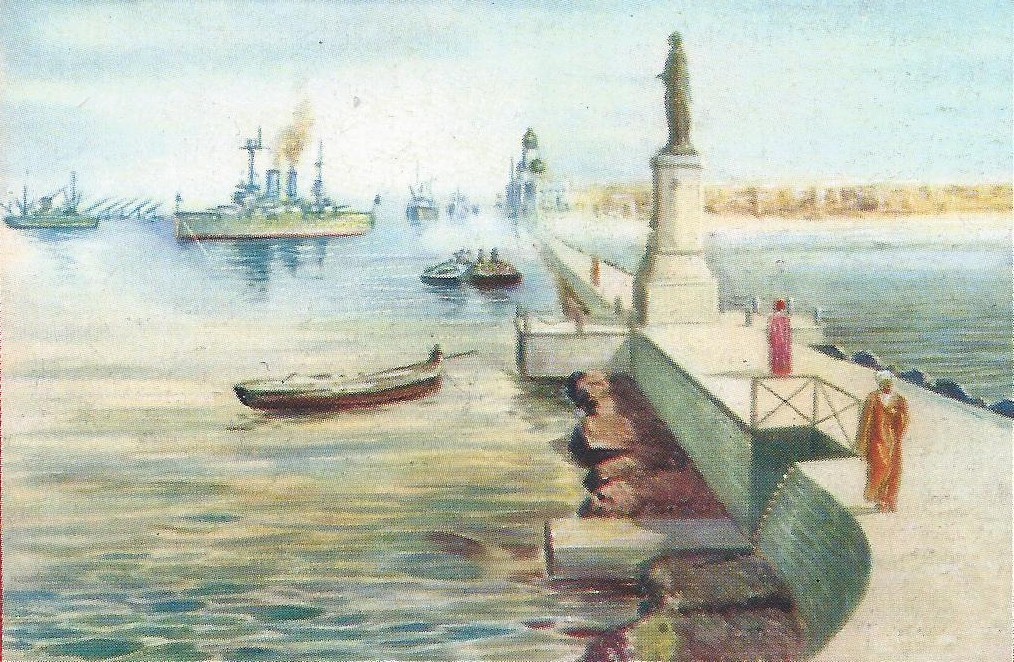 Enrochement des frères Dussaud surmonté de la jetée de Port-Saïd - Egypte