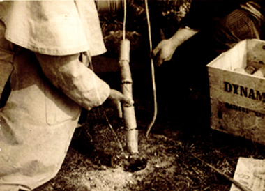 Au cours des années 1930, dans les houillères, les cartouches d’explosifs ne sont plus introduites une à une dans les trous de mine. Selon la Société Nobel Française, devenue propriétaire des dynamiteries de Paulilles et d’Ablon, la cessation de cette pratique tient à la fois à des motifs de sécurité et de rentabilité.