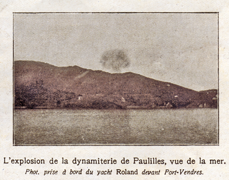 « Il y a quelques jours, le 29 mai dernier, vers 7 h. 15 du matin, une formidable explosion anéantissait plusieurs des bâtiments de l'usine de dynamite de Paulilles, à 3 kilomètres de Port-Vendres, et faisait de nombreuses victimes, dont six morts et une vingtaine de blessés.
