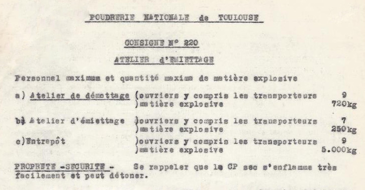 Poudrerie nationale de Toulouse - Coton-poudre - Consigne 1943